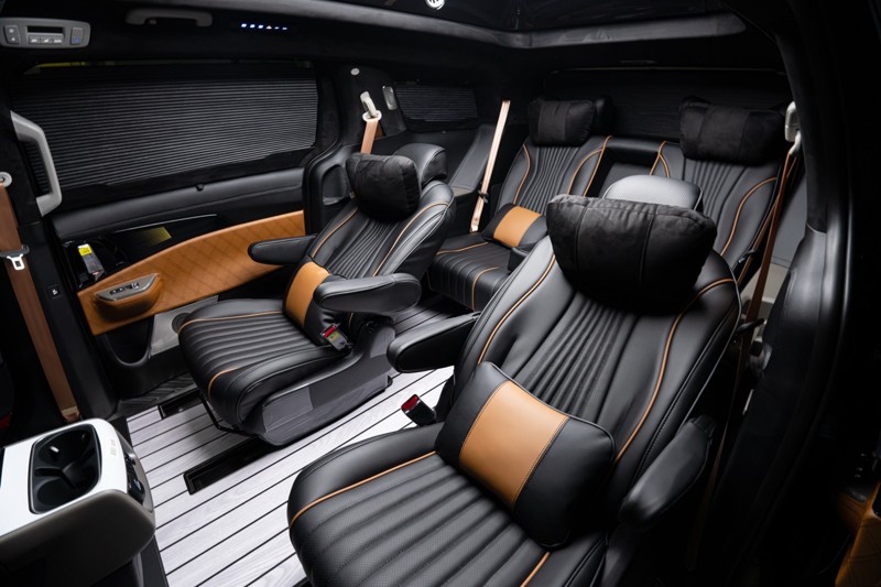 최상급 나파가죽과 정교한 스티치 라인이 조화를 이루어 프라이빗한 리무진 공간에 어울리는 품격을 더했습니다.